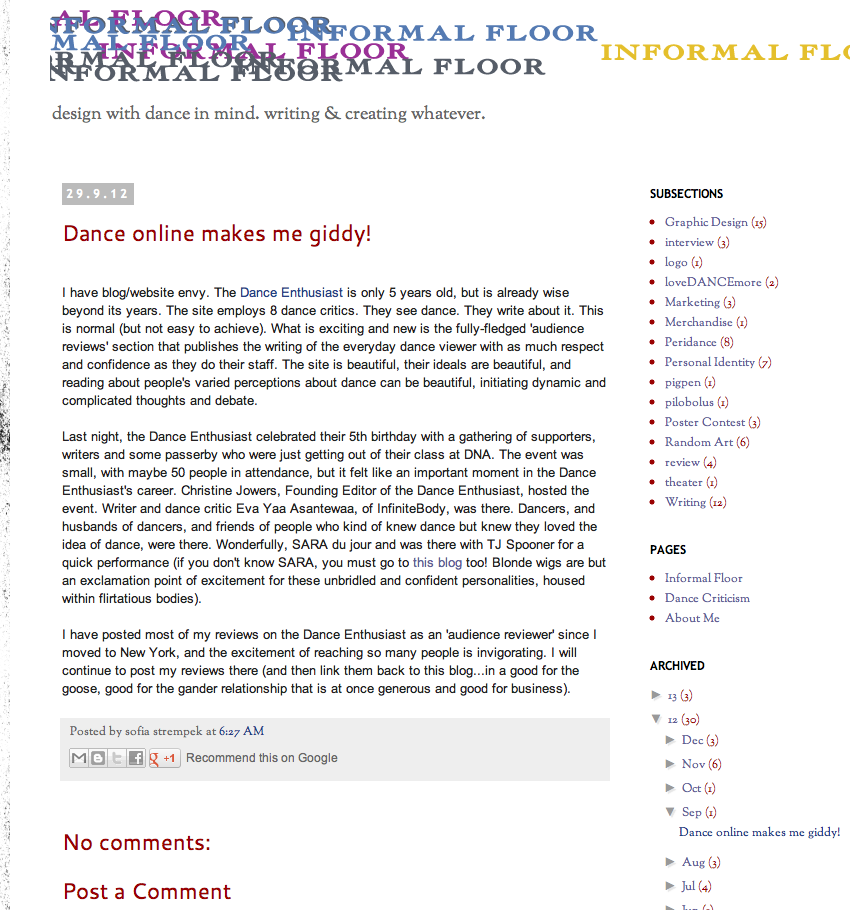 For More of Informal Floor Check Out This Link: http://informalfloor.blogspot.com/2012/09/dance-online-makes-me-giddy.html![]() |