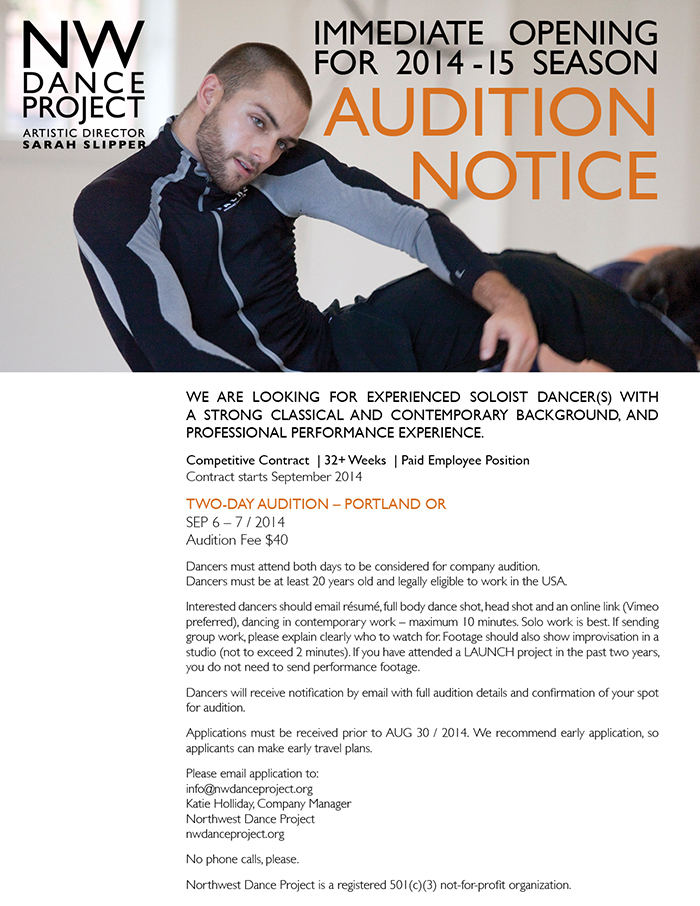 NORTHWEST DANCE PROJECT HAS AN IMMEDIATE OPENING FOR 2014-15 SEASON.