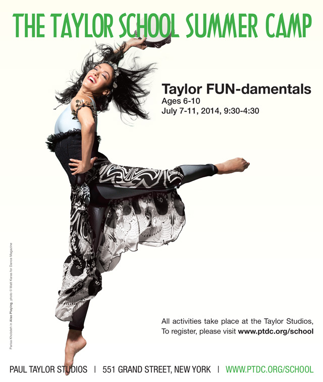 Do you know youngsters who love to dance? Let them know about The Taylor School's new FUN-damentals Dance Camp. A week of dancing, creating, and performing for kids 6 to10 in an exciting and nurturing environment. Students will learn the basics of the Taylor modern style while developing their own dancemaking skills. Dancing has never been this much FUN!