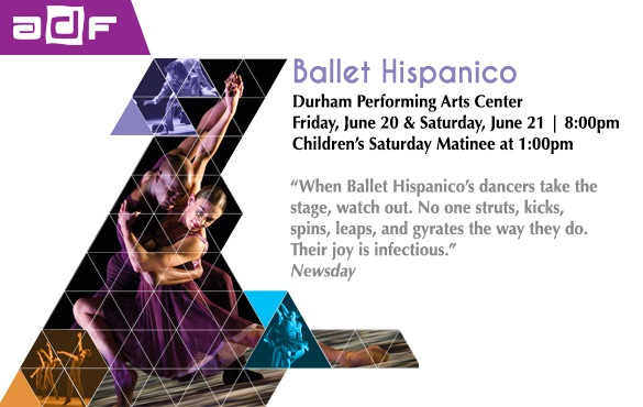 Ballet Hispanico, recognized as the nation’s leading Latino dance organization since 1970, will perform for the first time at the American Dance Festival at Durham Performing Arts Center on June 20-21 at 8pm, with a special Children’s Matinee on June 21 at 1pm. Highlights of the program include Artistic Director Eduardo Vilaro’s Danzón, which melds Cuban rhythms with jazz improvisation, as well as Show.Girl., the highly anticipated latest creation by ADF audience favorite Rosie Herrera. Durham Performing Arts Center is located at 123 Vivian Street, Durham, NC 27701. Tickets start at $10 and are available at http://www.dpacnc.com/events/detail/ballet-hispanico.