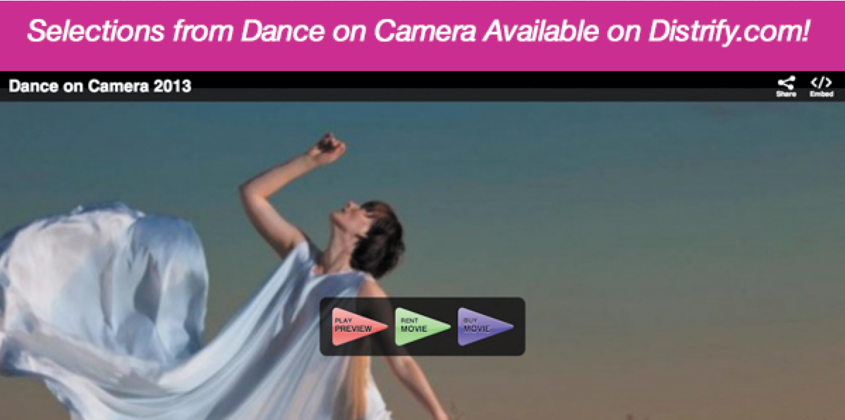 NEW YORK (June 2013) Dance Films Association (DFA) announces selections from 2013 Dance on Camera Festival (DOCF) available through Distrify, a toolset that turns the entire internet into a viral distribution platform.