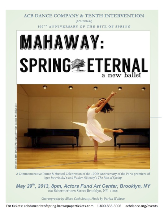 In commemoration of the 100th anniversary of the Paris premiere of Igor Stravinsky’s and Vaslav Nijinsky’s The Rite of Spring, attend a live performance of music and dance with the ACB Dance Company world premiere of MAHAWAY: SPRING ETERNAL, based on a Mayan folktale and set to a newly written Stravinsky-inspired musical score that will be performed live by the musical ensemble TENTH INTERVENTION. |