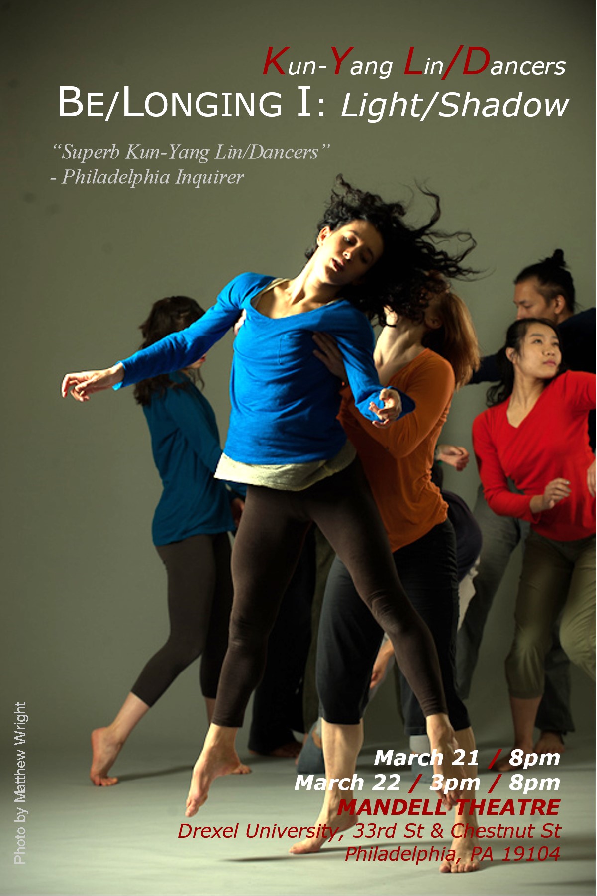 PHILADELPHIA – The internationally active Kun-Yang Lin/Dancers (KYL/D) will open their 2014 home season at the Mandell Theater on Friday, March 21 at 8 PM and Saturday, March 22 at 3 PM and 8 PM.