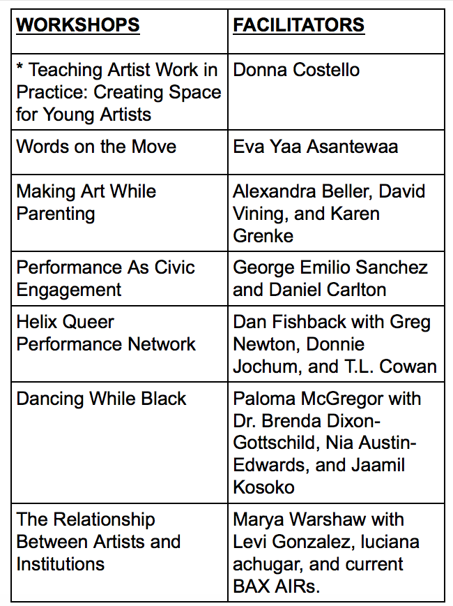 ARTIST SERVICES DAY features an array of talks and workshops designed to support working dance, theater, performance artists and their supporters.The day will culminate with a reception that is open to everyone.