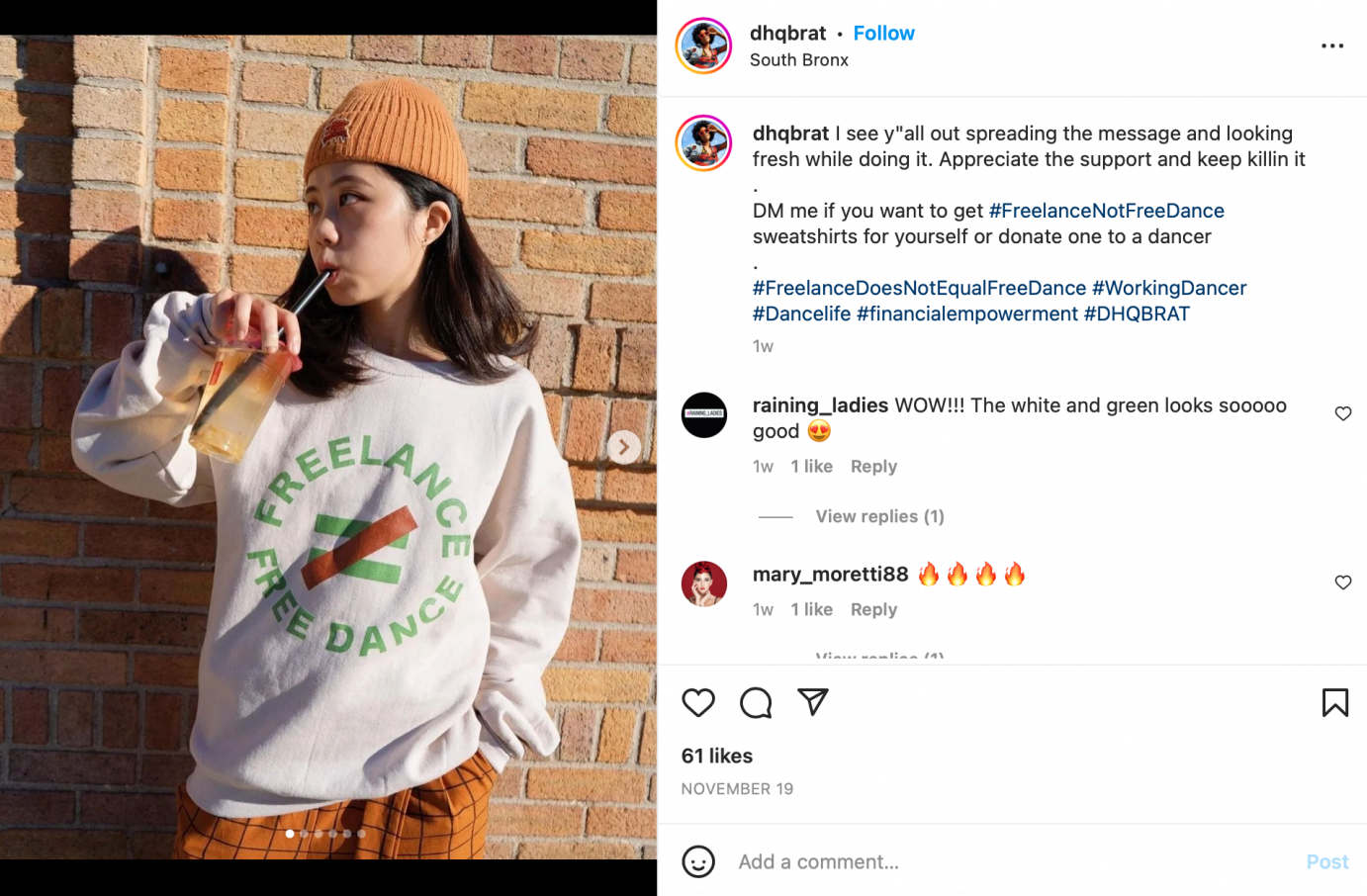 Tired of being asked to dance in exchange for 'exposure'? Then say it with a sweatshirt!