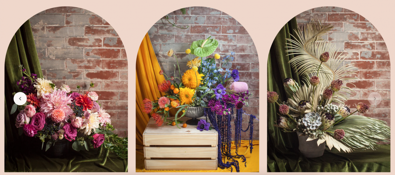 Assorted flower arrangements by boo•kay. Screengrab via bookaynyc.com