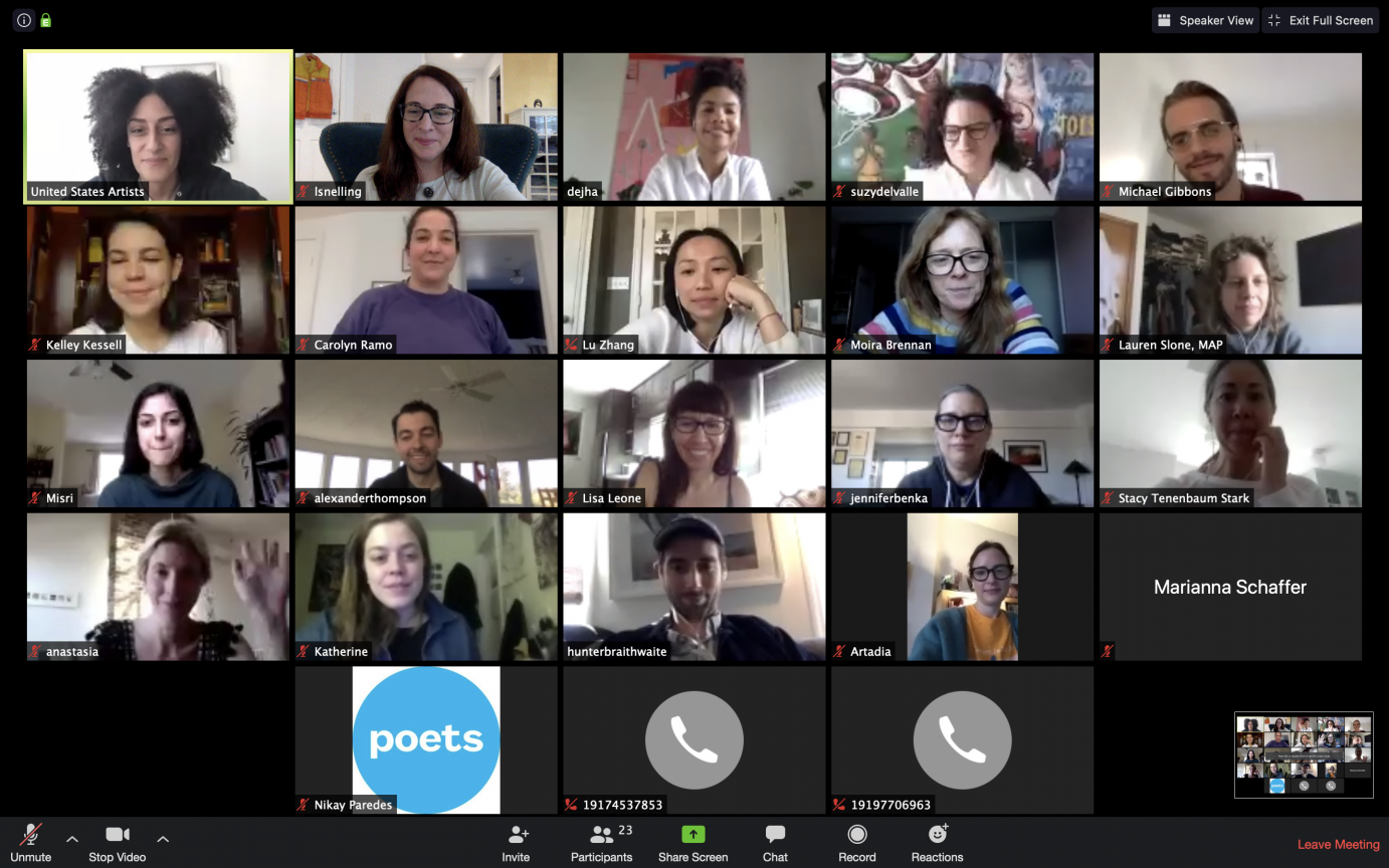 MB: There’s an executive committee made up of one member of each of these seven organizations. We meet weekly. There are sub-committees, as there are many different facets to consider: the application process, the review of applications, communication, finance and legal. There is also a huge and really exciting component to the whole effort which is non-monetary support for individual artists, so wellness and other resources that they can receive through this entity.