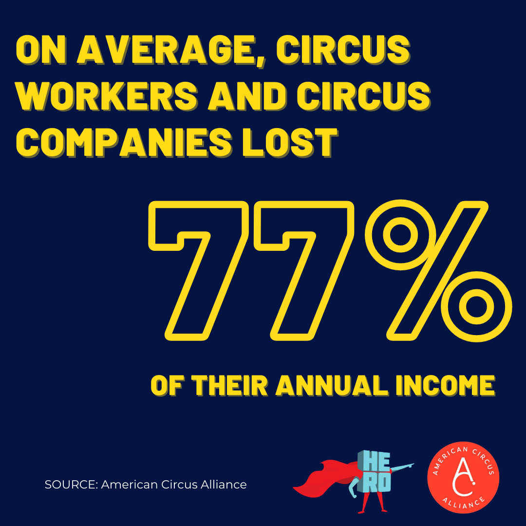 A recent survey conducted by The American Circus Alliance of 178 US circus professionals (representing 45 companies and 133 individuals) reported an economic loss of $24.6 million dollars in the last year, on average a loss of 77% of their annual income. 69% of those surveyed report that these financial losses and related career setbacks jeopardize their ability to continue professional activity.