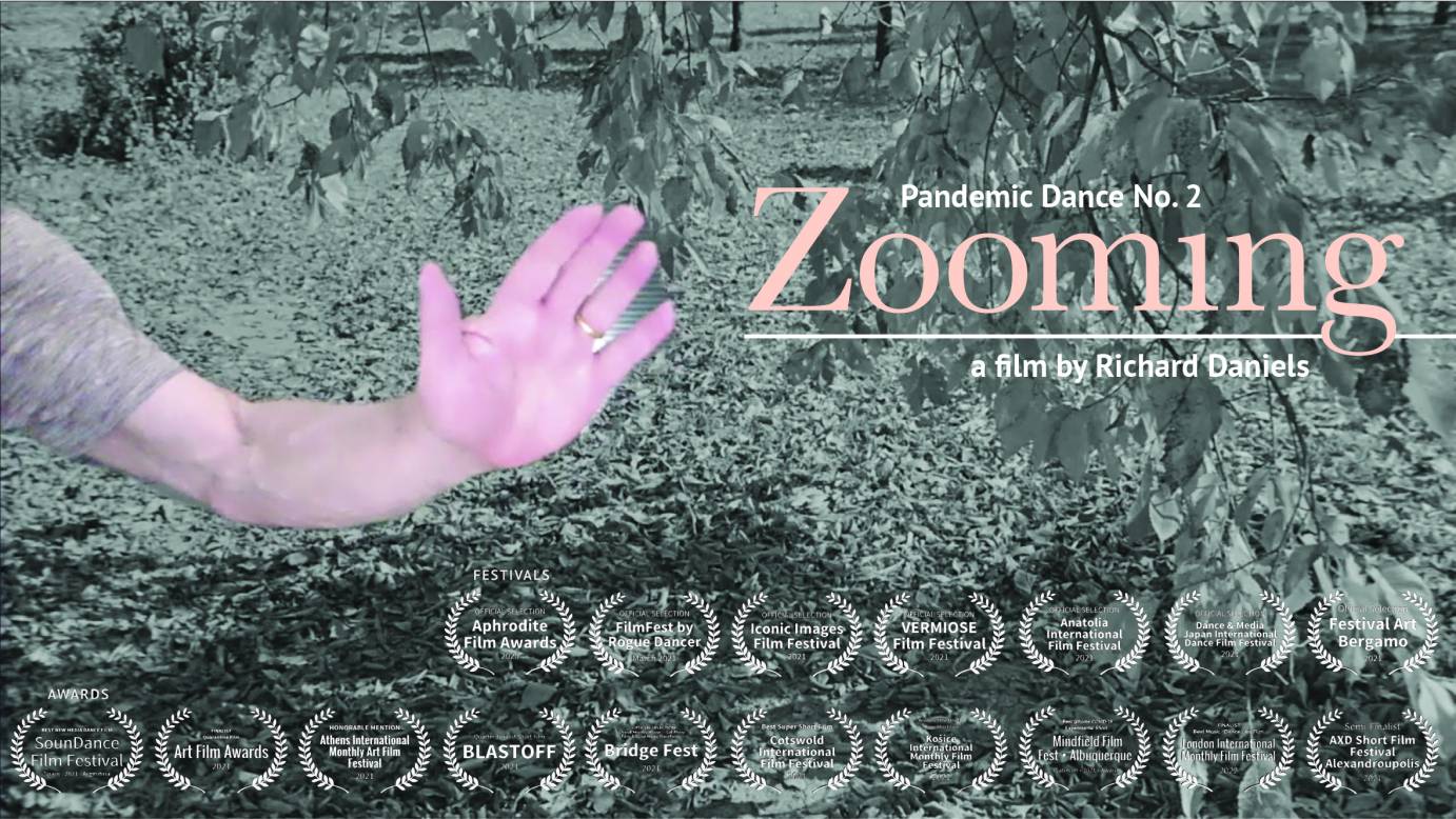 The Pandemic Dances is a product of the times and limitations through which we’re living. Two films are complete and in circulation: A Dance for A – Pandemic Dance No. 1; and Zooming – Pandemic Dance No. 2. Three more films are in production. The series is made with at-hand elements: smart phones, portable lighting, computers, green screen, and shot entirely within the confines of one apartment. The two circulating films have already been accepted into 37 film festivals and won 20 awards.