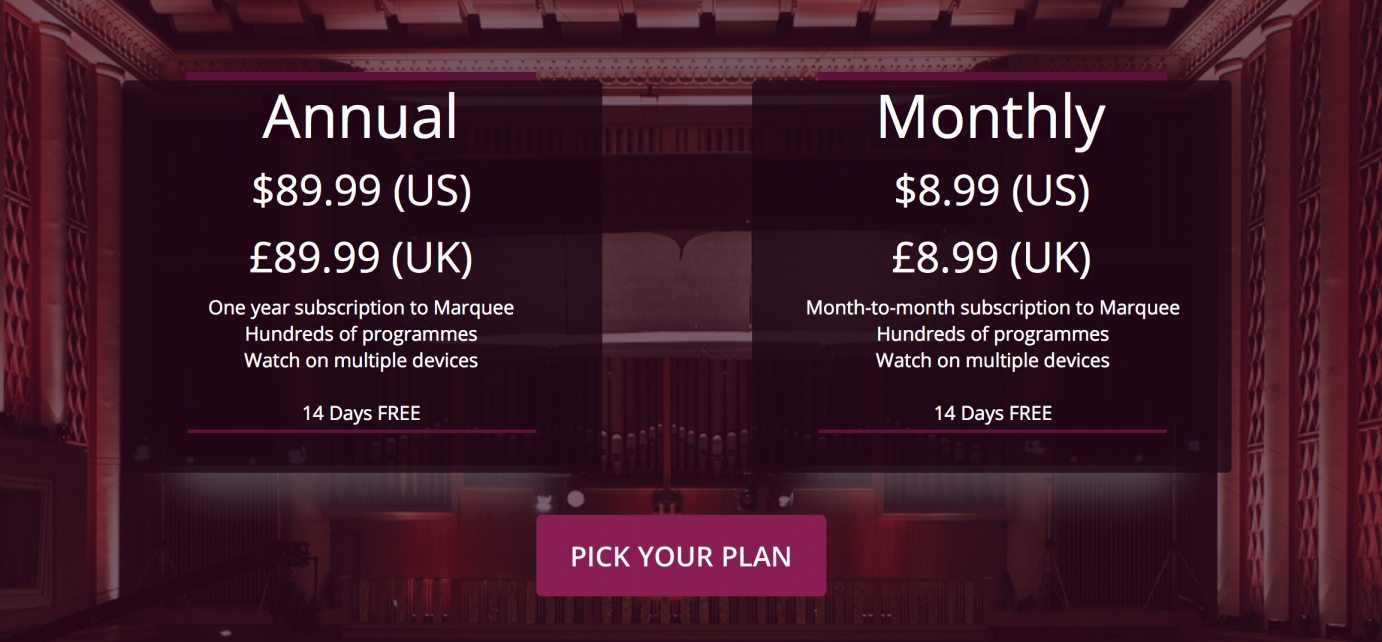 July 2018 marks the launch of Marquee.TV, an SVoD service for arts and culture content. Designed for a 21st century audience, Marquee.TV partners with leading global arts organisations and draws world-class content from international broadcasters as well independent producers. Having run in beta for 6 months, the service is now available via native apps on iOS and Android, Apple TV, and Amazon Fire for £8.99 per month ($8.99 in the US).