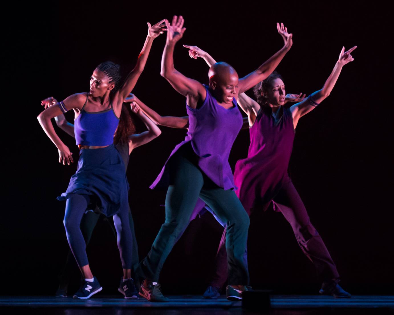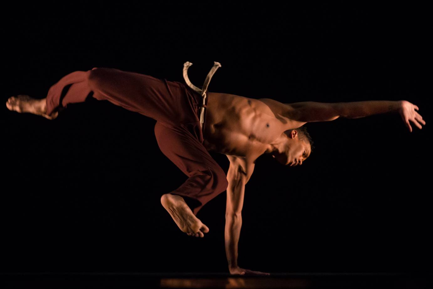 A techno beat thrums to a cadence of humming and crooning voices. Bongos and ululations (a cross between wailing and a high trilling sound) usher in part battle cry/part lament, as dancers leap individually, then pair up, then gather as one.