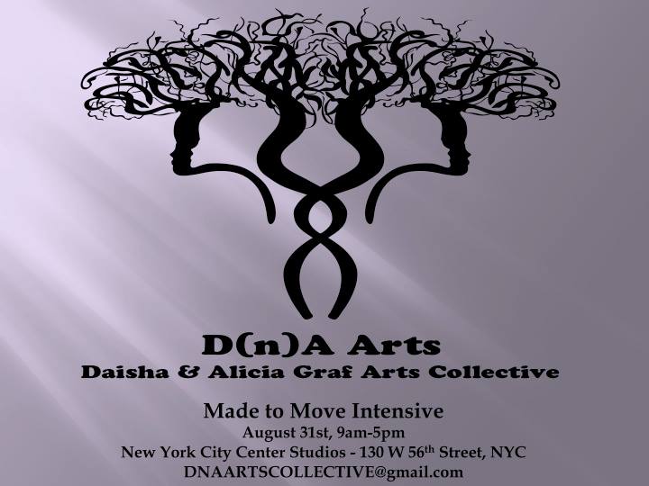 If you would like to be part of an amazing dance-learning opportunity, you will have your chance on August 31, 2013. On that day, Alicia Graf Mack, otherwise known as the face, or rather, the flying leap of the Alvin Ailey American Dance Theater (you can see her tilted, aerial side -split on posters all around the city), and her sister Daisha Graf, an up-and-coming, dancing, acting, recording artist, will offer intensive classes from 9am to 5pm at New York City's City Center Studios, 130 West 56th Street. This effort called Made to Move, marks the beginning of the D(n)A Arts Collective's creative activities ( by the way, that's D for Daisha and A for Alicia.)
