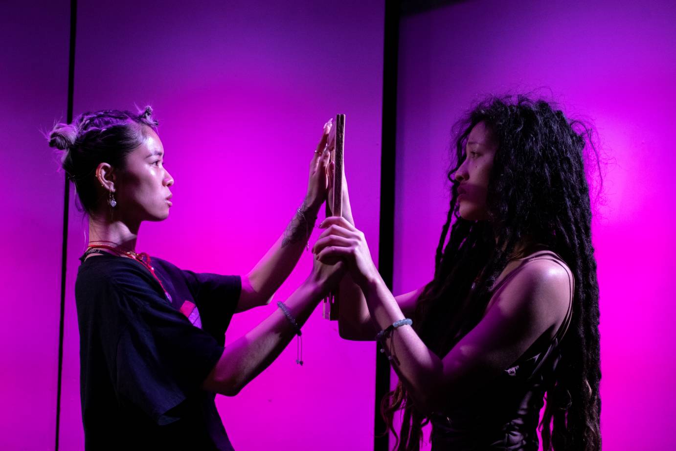 (L-R) Brenda Lin (Young Ruby) and Aliyah Ali (Adult Ruby) in the #UnapologeticallyAsian performance at 2023 Estrogenius Festival in NYC; photo courtesy of @ak47division