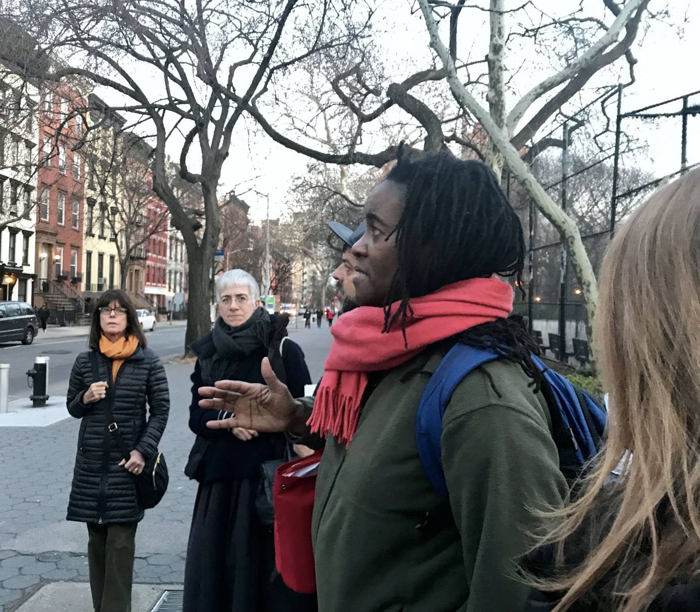 Enslaved Africans, by way of the West Indies, helped farm an estate that extended north, from Houston to 21st Street, and east, from Third Avenue to Avenue C. As we stop and stroll the downtown, we encounter some of their stories — stories we could easily miss in the speed of daily city life, and if not walking with a historian. The common threads, no matter the time period, are a struggle for space, the freedom to move, the search for justice, and a resilient spirit.