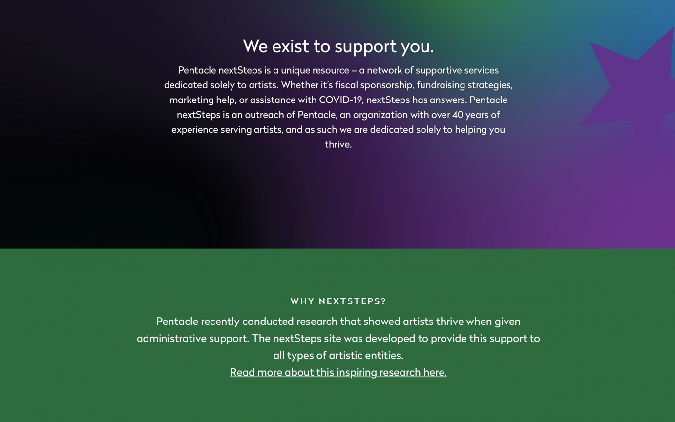 Nobody knows this better than the team of artist/administrators who work at Pentacle. Atypical of most commercial arts managing organizations, this group is not-for-profit and somewhat of a hybrid. Their offerings not only include traditional management and booking, but also support services and community education programs. Artists at every stage of their career stand to benefit from working with them. Since 1976, Pentacle has listened to the needs of performance artists and helped them to do what they do best — create.