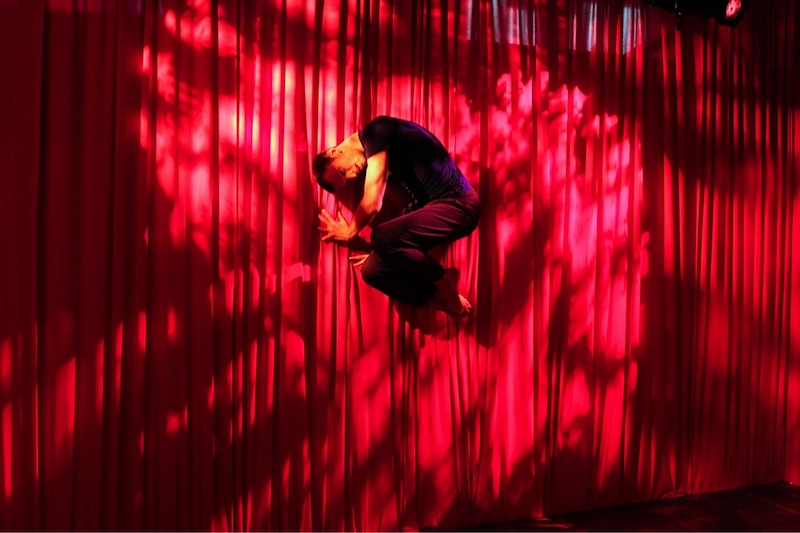 The dancers do establish their physical fleetness in the Pulsing Chamber. Raw and combative, they pitch themselves helter-skelter and climb the scarlet-curtained walls. We cower as bodies heedlessly zip and hurl inches from us. Without moving a muscle, our heart rate soars. Each chamber seeks to examine how our hearts react to specific stimuli.