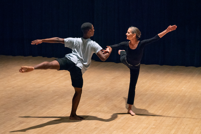 Artifact, a duet between Fenley and Jared Brown, is a different study of time. Fenley and Brown rotate peacefully in silence, usually facing away from one another. Sometimes their phrasing varies, but mostly they move in exact unison. They make contact for the first time when Fenley places a hand on Brown’s shoulder in a comforting, maternal gesture.