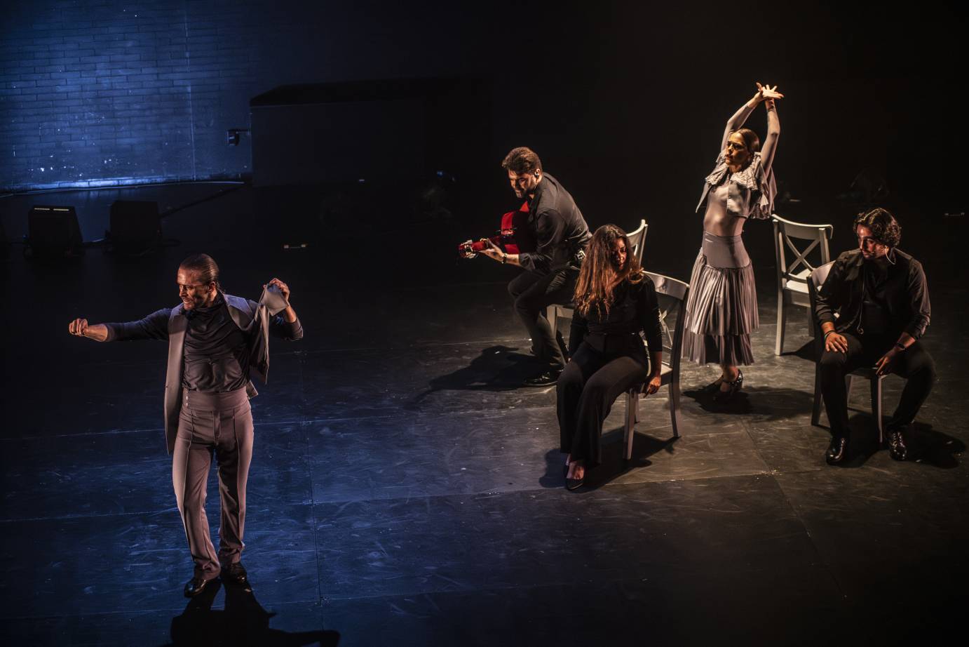 While many Flamenco Festival New York performances have had large casts with multiple costume changes, and all the traditional props of hats, bata de colas, castanets, mantones and lighting to accentuate the rhythms, this production has a minimal, contemporary feel. The colors of the dress and lighting are even-toned and subdued.