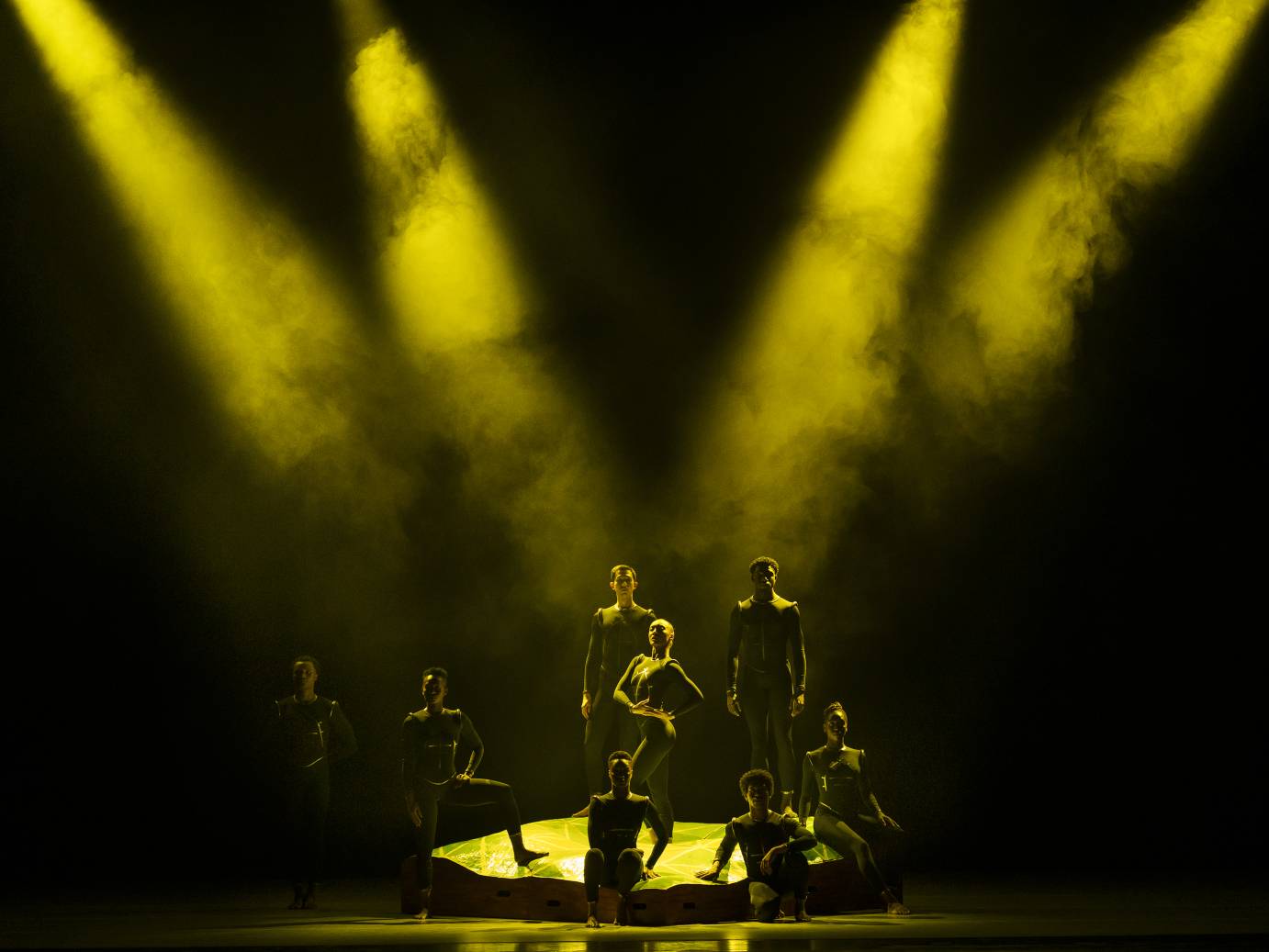 With a sharp battement to the front, followed by a quick jump with alternate knee and arm pumps, the audience knows they are viewing the unique blend of African and American modern dance explored by Ronald K. Brown. His Grace, originally choreographed in 1999 and re-imagined in 2024, gives its twelve dancers a chance to blaze with regal spirituality and spinal elasticity. Brown describes his dance, "Grace weaves the story of a Goddess' journey to Earth to spread grace among humans, ultimately welcoming them to heaven.” His timing, knowing when to offset frenetic group movement with stillness, is uncanny. These indelible moments feel painterly and cinematic.