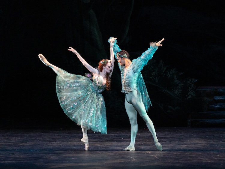Frederick Ashton’s The Dream to Felix Mendelssohn’s music, compactly retells Shakespeare’s midsummer tale. Daniel Camargo deserves special mention and applause for taking on the role of Oberon in every performance of the season. Gillian Murphy and Cassandra Trenary star as Titania, Elwince Magbitang and an especially crisp Jake Roxander are spectacular as Puck, and Melvin Lawovi’s Bottom gives the program a delightfully comic itch.