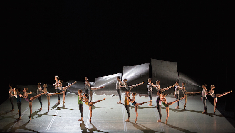The first dance, McGregor’s Chroma, to music by Joby Talbot along with his arrangements of music by the alternative rock duo The White Stripes, is filled with unexpected movement. McGregor, says Corella, “uses the dancer in strange ways. The body never stops moving.” As I watch the dancers, I think they move like insects with elbows, and edges, and curved backs. Yet they are elegant, precise, and relentless. They do things that don’t seem possible. A raised leg just keeps raising, pliés shift from side to side, dancers perform splits in the air while seeming to fly across the stage.
