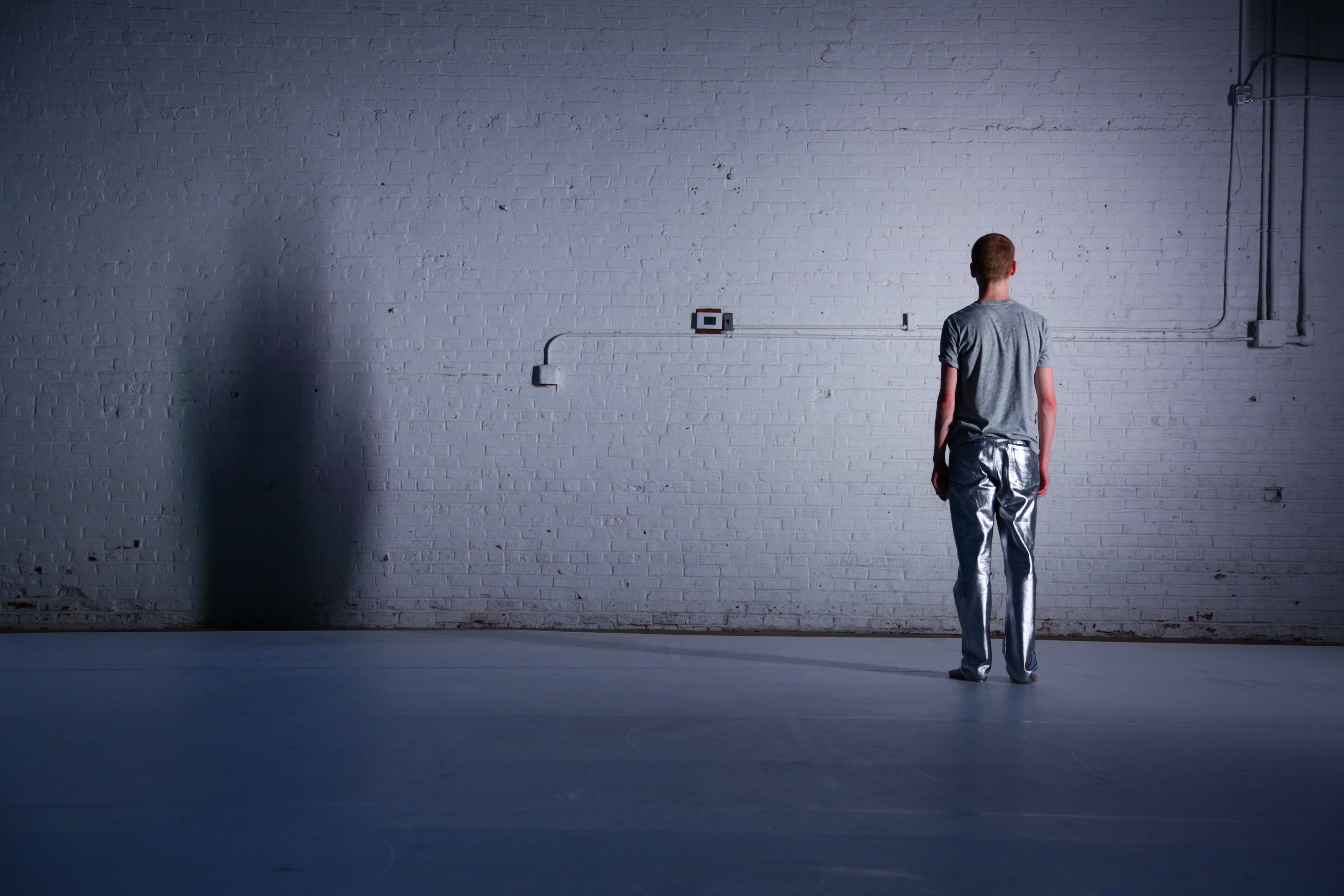 The unadorned expanse of white-floored stage hovers just away from white-bricked walls, yet it is more than a blank canvas for the dance. The performers play with the rough texture and fixtures on the walls, bridging the narrow border of concrete that surrounds the raised stage like an interstitial zone — a space for waiting and watching, resting and preparing. The fade of the waning dusk complements the subtle tones of Madeline Best’s lighting that carefully attunes the glowing or graying white with watercolor washes of pink or blue and diffuse angles that cast soft shadows like gentle ghosts. As the dance progresses, the performers shift from Nicole Kurily’s jewel and earth-toned costumes to billowing metallics that move organically with the dance and resonate with the ambient progressions of sound and light.