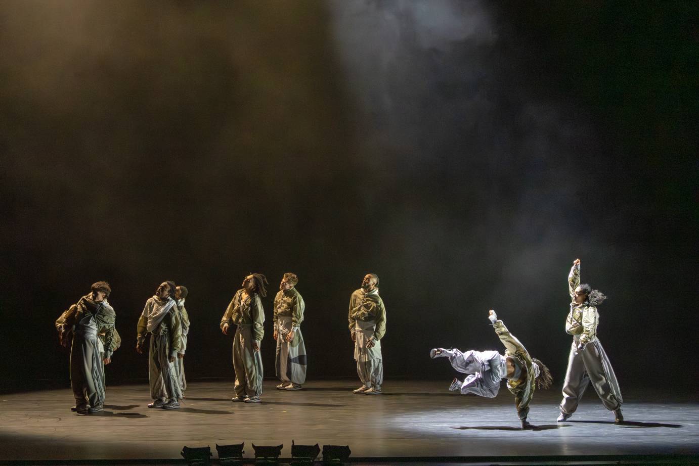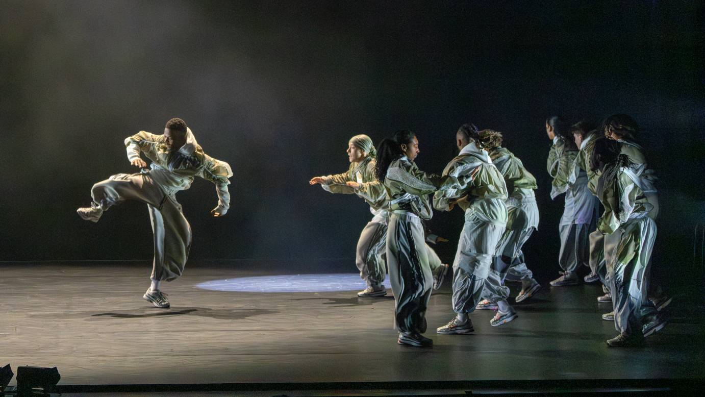 A hushed moment unfolds before the house lights fade. The nine dancers trickle onto the stage, sitting in a semicircle of preset chairs. We continue chatting until we sense their presence. One dancer steps into a spotlight and the beat drops: their energy ignites.