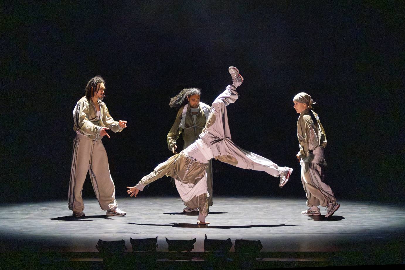 Cycles unleashes intricate Popping, Locking, and the raw intensity of Krump in a kinetic display. Precise, syncopated steps charge, burst, and reverberate through Boy Blue’s electrifying cast. Asante’s pulsating electronic score surges through the space, its driving beats embodied by the dancers. Ethereal interludes thread through the music, prompting a striking contrast as performers shift from sharp, percussive accents to floating, fluid motions.