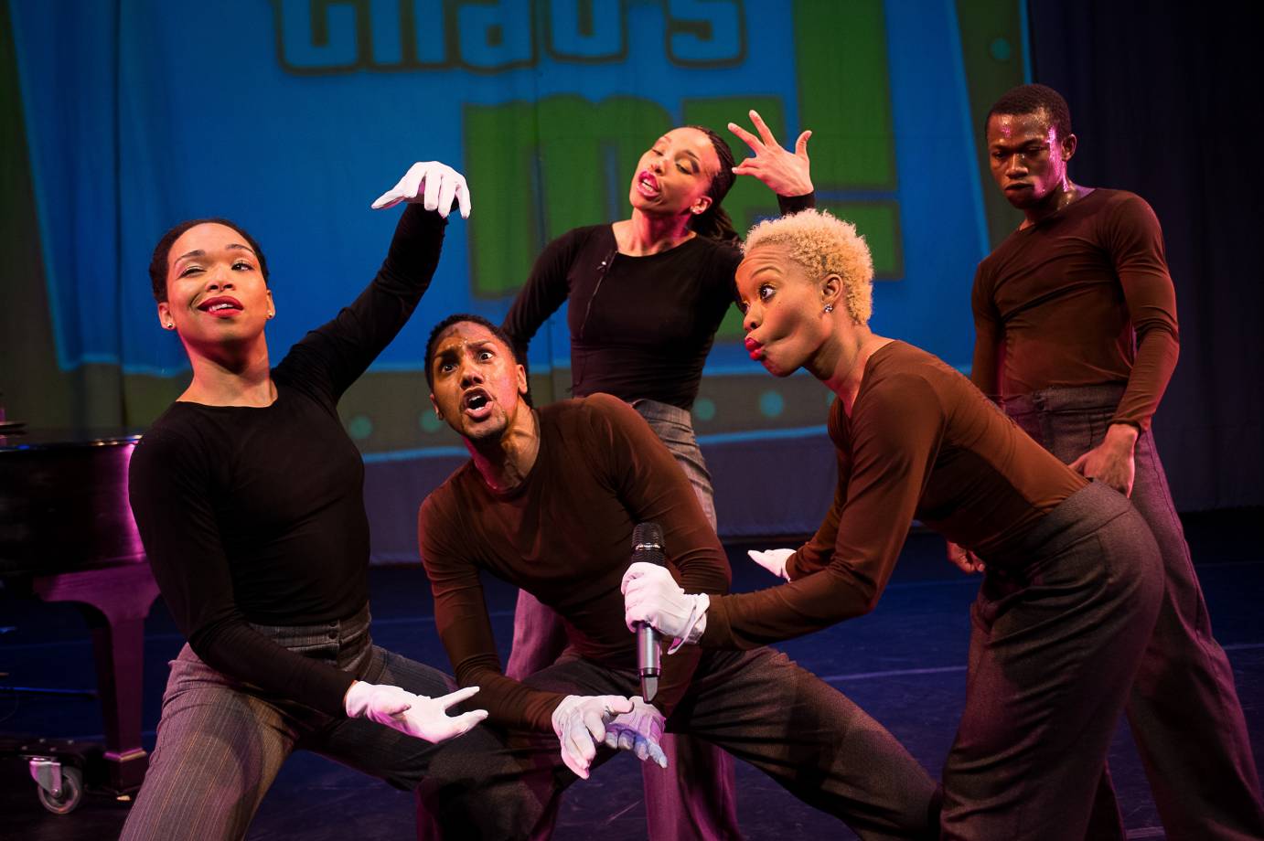 The dancers, wearing white gloves and saddle oxfords, caricatured the extents to which Blacks modify themselves to appease whiteness. Smiles overtook their entire faces, shaking jazz hands obscured pain and physical feats, like jumping high off the floor, repeatedly, entertained viewers while draining the Black body. Amidst all of this, there is a statement about stamina—physical in this context, as dancers bobbled their heads like dolls, tapped their feet against the floor to create beautifully syncopated rhythms, fanned their limbs from one corner to the other, rapidly extended their arms to their fronts and sides and waved their hands in front of the face with a sense of desperation.