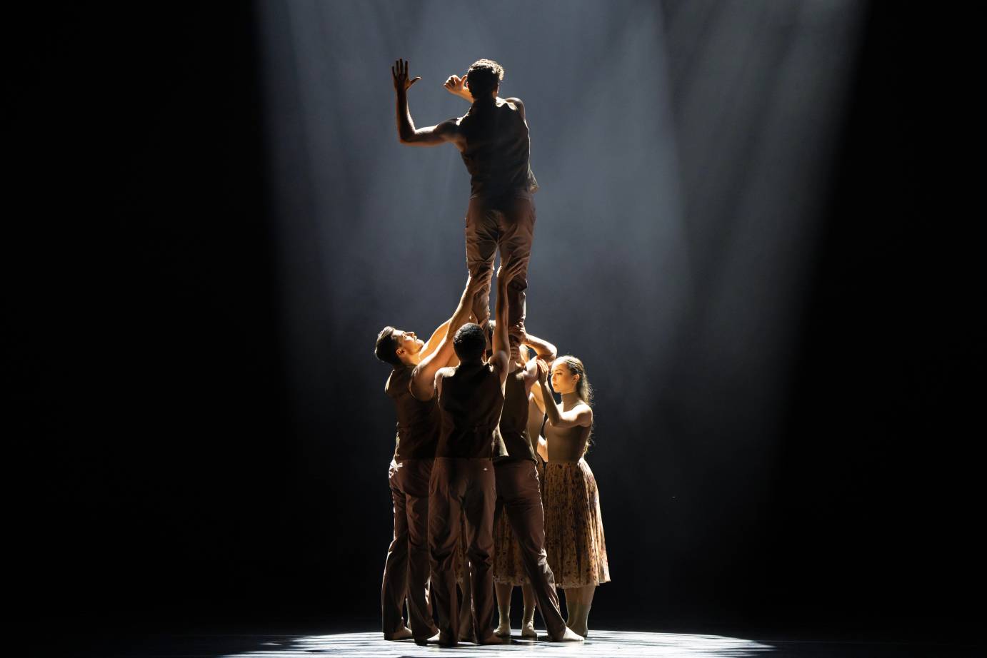 Even if this closing number by the Italians steals the show, the other offerings on Program 4 make for a satisfying whole. Watching šεgatәm, performed by the Royal Winnipeg Ballet, I don’t catch on to the tribal theme of Tla’amin Nation Elders and the story of a leader facing burn out, who must learn the hard way to lean on his community. I see a ballet soloist held aloft by a group, who then dances for a long while by himself before he gets to dance with the others, and is momentarily held aloft again before the piece eventually ends. This piece is balletic and handsomely constructed, and it makes me wonder if the tribal flavor got lost on the long journey from the Canadian prairie. But then I read the program again and realize that šεgatәm is a world premiere, choreographed by Cameron sinkʷǝ Fraser-Monroe. If anyone ever complains again about putting an umlaut over the u in my last name, I will send them to Canada.