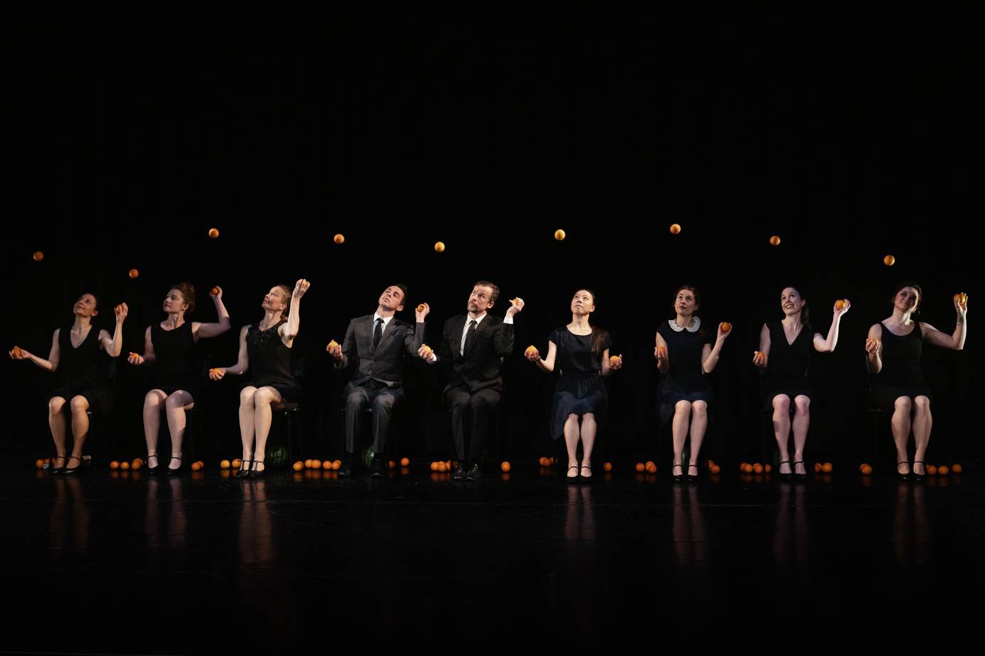 On Program 5, September 29, Gandini Juggling presented excerpts from Smashed2 by Sean Gandini and Kati Ylä-Hokkala. The piece is an overlong mess with lots of oranges and nine dancers who are forced to juggle in all kinds of distressing situations that are meant to be funny but feel like torture.