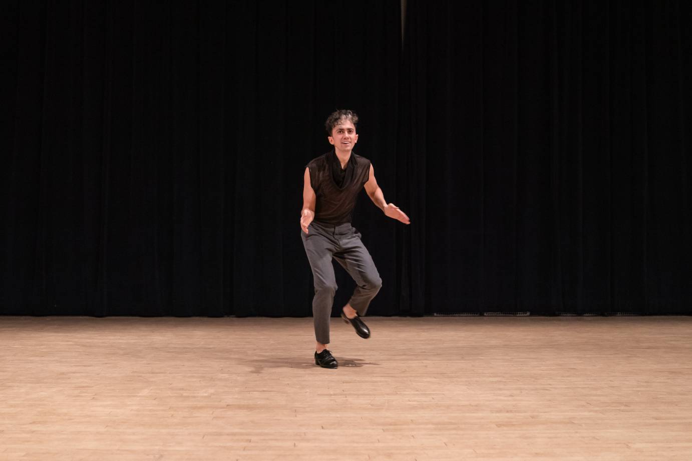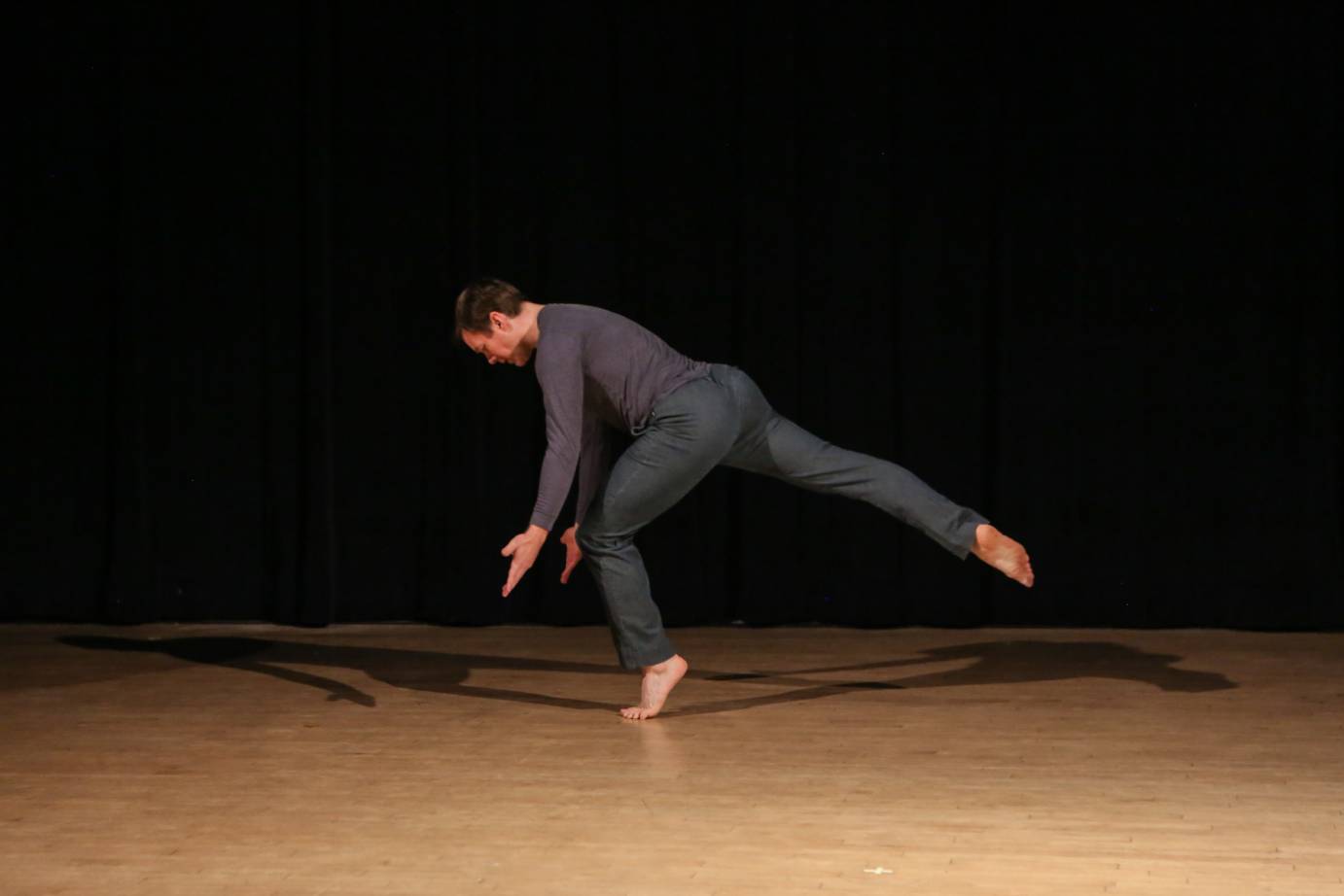 Octandre, created by Waring for Passloff in I958, is a highlight of both programs. This sixty-year-old dance still speaks eloquently. Nic Petry of the Bang Group reveals a multi-textured landscape on the empty stage. In a wholehearted and sensitive performance, he holds our attention, shifting our interest and appreciation of his imagined world with each attentive articulation of his body.