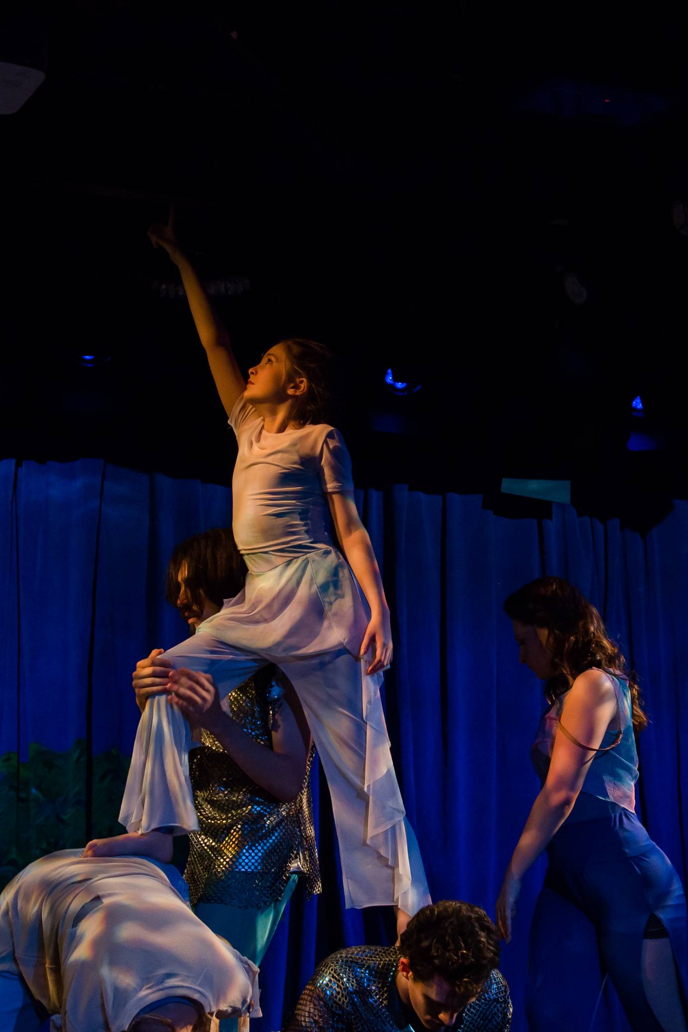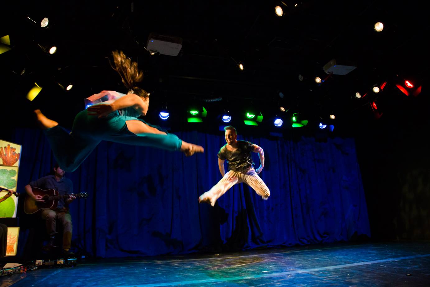 The addition of Carr’s wide-eyed, pre-teen daughter, Caryn Byrne, introduced as a little fish exploring the crooks and crevices of an imaginary coral reef in the first improvisatory aqualude of the evening, is particularly touching. As the evening’s music and dance come to a close, this young dancer is lifted up above the rest to look out with hope towards a new home, or maybe a new path for us to follow.