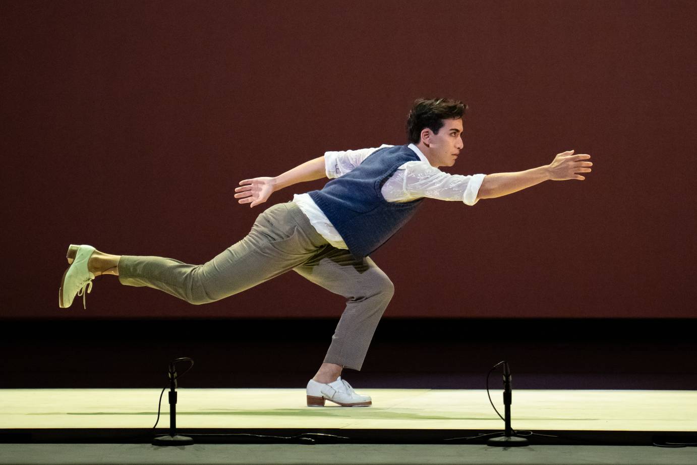 Dario Natarelli taps away to George and Ira Gershwin's The Man I Love in a 2023 choreography of the same name created by himself and tapper extraordinaire, Michelle Dorrance (another City Center commission). Derek Louie, on the cello, enters once the piece begins, accompanying the recorded music and the dancer, almost in a dreamlike state. Indeed, Natarelli reaches toward the musician in luscious, pleading arabesques as if approaching the unattainable.