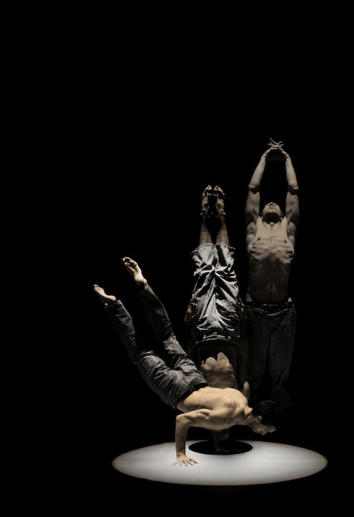 Orin Camus begins his solo, Circle Moods, standing on his head. Well, that's not entirely true. There was a long stretch where I was thoroughly entranced by the minute movements of the fingers of his right hand. His body is more like an athlete's than a dancer's, and it moves from one incredible contortion to another. He has the same sense of sculptural form, sensuality and power that we see in Rodin's work. The quality of his transitions and timing are so deeply imbedded and his body is so strong that it feels like we are watching living, breathing, feeling sculpture that is made of bronze, not flesh.