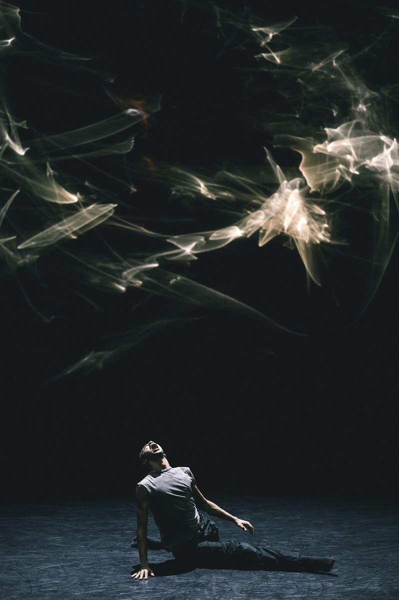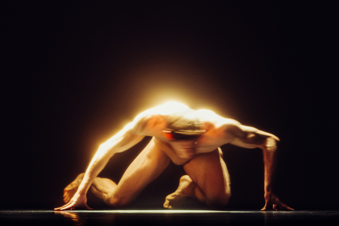 Dancer Scott Fowler of Netherlands Dance Theatre in Figures in Extinction. Photo by Rahi Rezvani