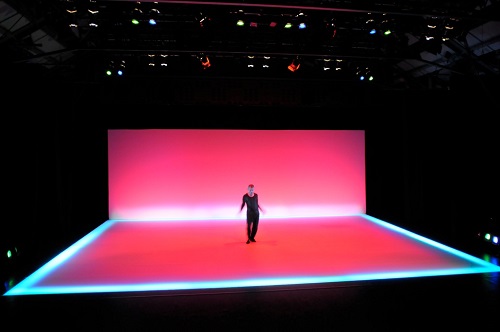Where most performers try to integrate their stage movement with a video that appears on the large screen behind them- a pairing which rarely works- Umeda and his team have the confidence to allow the performer to erase himself.