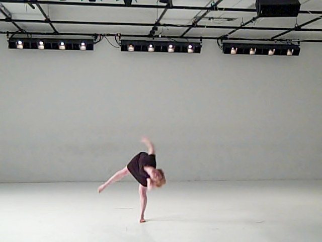 Now Let Me Be Still, a solo choreographed and performed by Harrold, toys with equilibrium versus instability. Her dark dress against the white background of CPR subtly underscores these points. Accompanied by guitarist Charlie Ruch, Harrold moves like warm molasses, lusciously articulating with her every joint.