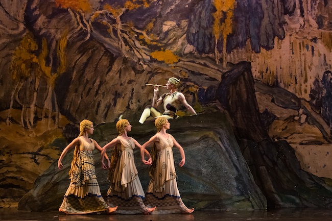 Léon Bakst created the costumes and a stunning abstract woodland in a palette of ochre, browns, greens, grays and blues that almost smell of the musky, heathen earth. The fairly overt reference to the Faun's sexual climax at the end of the work certainly contributed to the mix of outspoken reactions at its premiere.