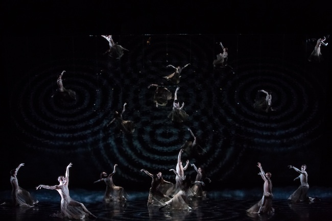 I wonder how Boléro, would come across without Marina Abramovic's projections and scenography? Cherkaoui's and Jalet's movement is a whiplash of swirling spirals in a sea of chaos. The dance is given form and order by the projections that begin as concentric circles. The circles come rippling out from central points all over the stage, with the dancers, whirling and wrapping within them. The waves expand out into what feels like the ocean of existence.