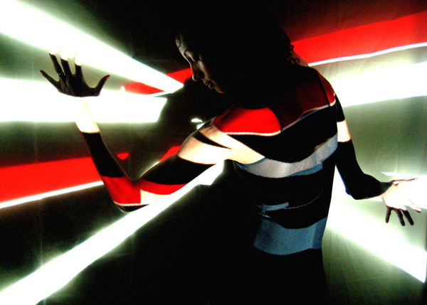 According to the program, Patrick Lovejoy considers himself to be a filmmaker and video artist first, and a performing artist second. It is clear that the dancers and choreography are incidental to this performance’s vision. They just happen to be fine movers with gloriously honed bodies accustomed to creating meticulously geometric angles and churning into controlled shapes. They could just as easily have been anyone else: contestants on “America’s Next Top Model” posing for the camera’s shutter; go-go dancers at a trendy night club; hapless passers-by captured by the screen’s linear graphics as they walk from one destination to the next.