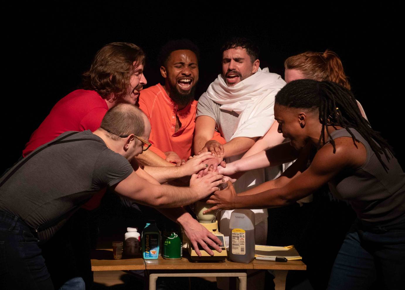 The six performers — seven, if you include Alvaro Gonzalez, who experienced an injury on opening night, and Houston-Jones, who filled in for select scenes — multiply and amplify Bernd and his collaborators’ original roles. They enter the space one by one and simply stand for several minutes facing the audience at close range, shifting postures, gazes, and emotional states in a subtle dance of body language that is more self-possessed than confrontational. They are so firmly grounded their presence remains even as they make a gradual backward retreat, their bodies receding into a scattered field at a more customary performative distance. This interplay between presence and absence opens a space to contemplate Bernd’s own presence and absence within the work and sets the tone for the varied refractions to come.