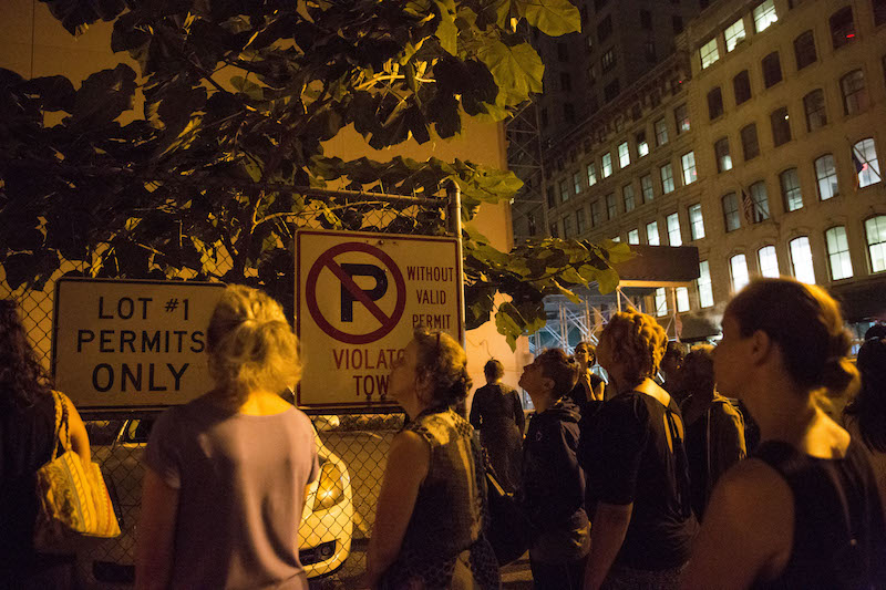 The finale lifts the audience from our passive reverence. Soup is passed around; we drink, and it is delicious. A walk is proposed; we visit a Paulownia tree growing in a parking lot, and it is beautiful. Weed Heart ends there, with us — sated bellies, hopeful spirits — gathered around a tree, the zooming cars and graffiti-smeared signs of Chambers Street forgotten.