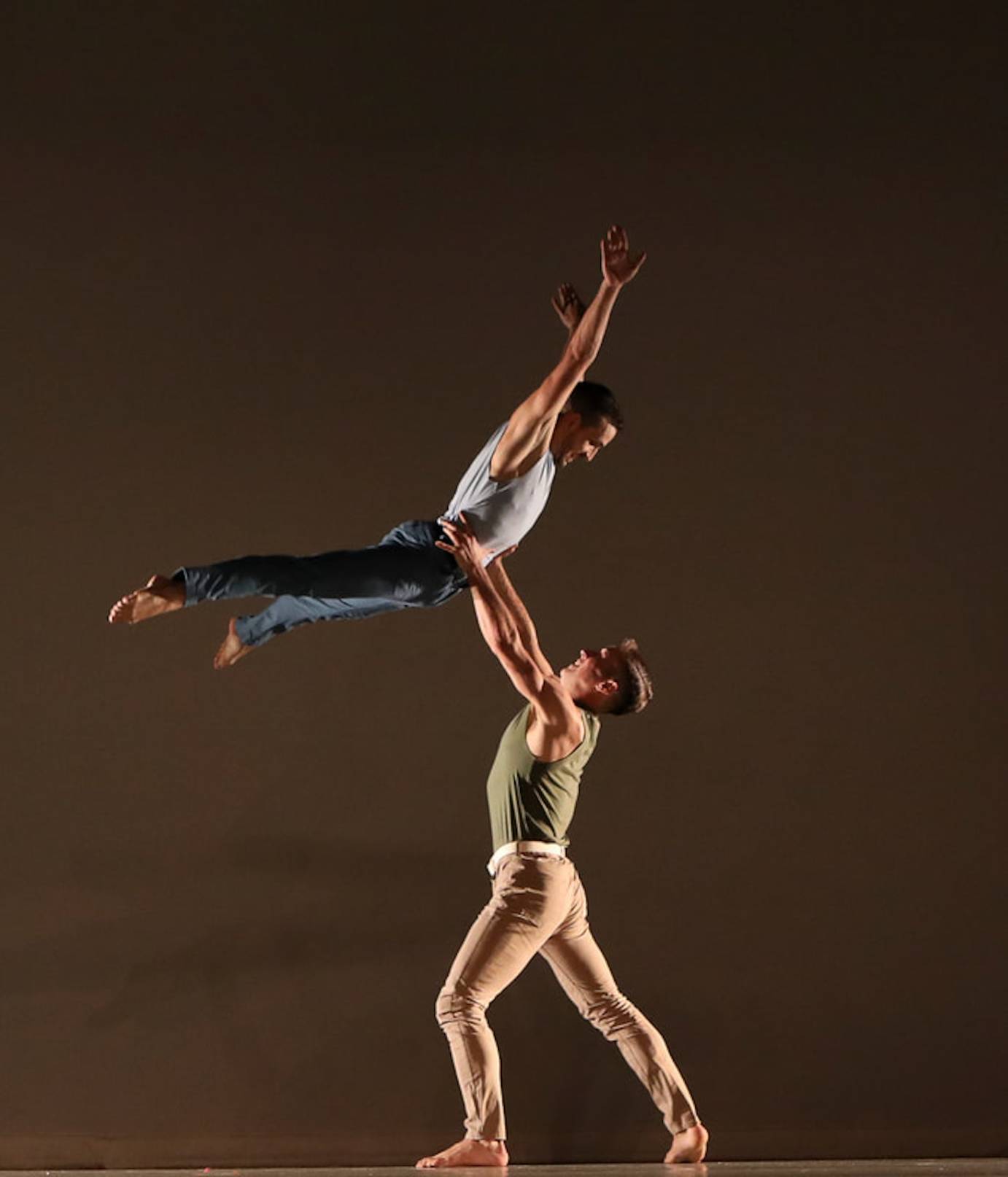 The show ends with the first piece Lehrer created for the company in 2007, A Ritual Dynamic. This work often closes their shows, leaving the audience with a final impression of Lehrer’s joyous style. “This piece was created to define our signature aesthetic, which is unbelievable athleticism combined with pristine artistry, wrapped in wonderful entertainment,” says Lehrer. When A Ritual Dynamic begins, there is no shortage of showing off and risk-taking as the dancers soar, extend, and fly over one another. The audience reaches full engagement, unsure of what to anticipate next in this gymnastic whirlwind.