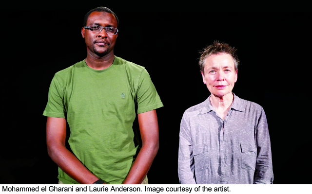 The evening concerts added some features to the installation, principally Anderson’s performance of “O, Superman,” without changing things substantially. In addition to playing her music, the artist read aloud from poet Alan Ginsberg’s “Song” (“be mad or chill/obsessed with angels/or machines,/the final wish/is love”), and introduced El Gharani.