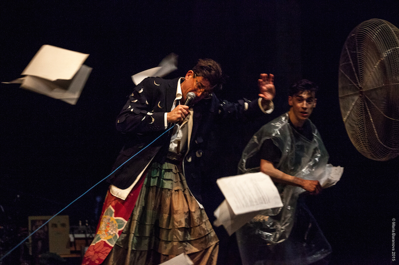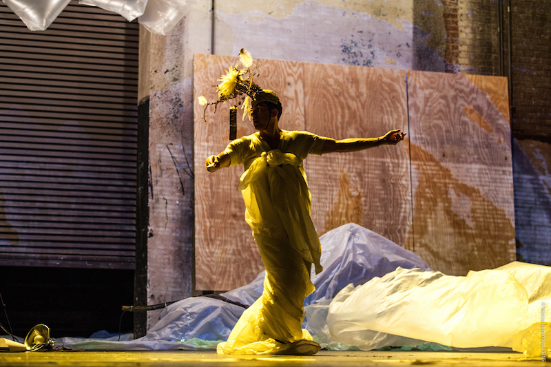Under the influence of Japanese Noh theater, with a brilliantly layered script; precise, ritualized choreography that can appear serene, poignant, or comical; crashing rock music; and vibrant multi-media images, the expert players of the Advanced/ Beginner Group morph into the many storytellers we need to organize this profound chaos.