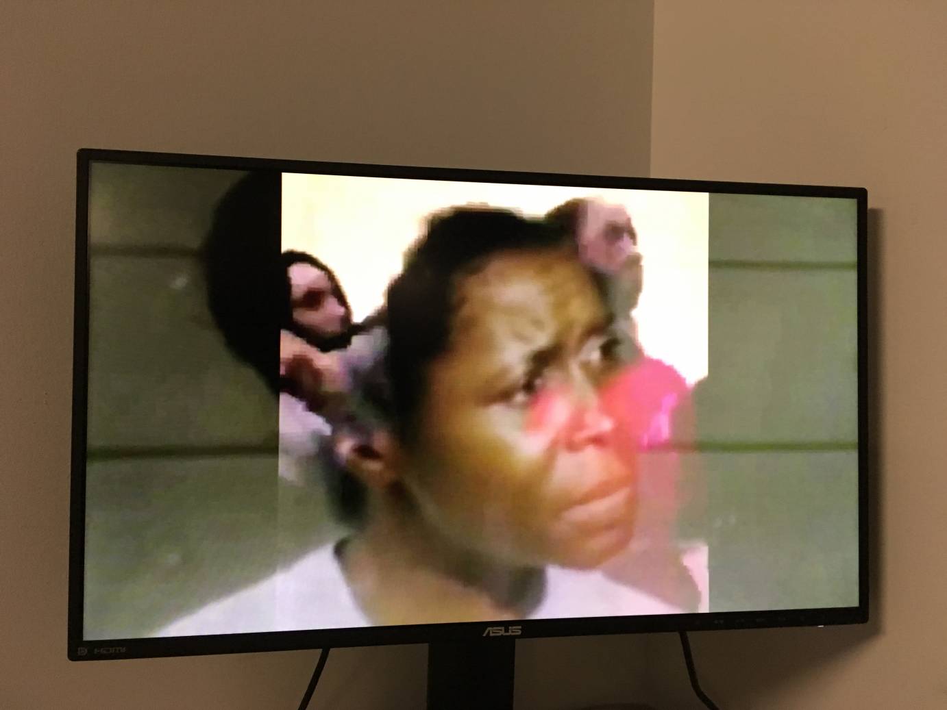 A Pieace, the last portion of [GET WELL SOON] you black + bluised, is a private experience. A video link live for two hours was emailed to audience members to watch on the screen of their choice. The film opens with a medley of videos: Victoria Santa Cruz’s “Me Gritaron Negra,” a four-paned video of Whitney Houston singing “I Loves You, Porgy,” and poet Nikki Giovanni’s “When I Die,” among others.