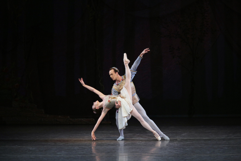 Daniel Ulbricht made his debut as the fairy king Oberon with Teresa Reichlen opposite him as the fairy queen Titania. Ulbricht, who is usually cast as Oberon’s servant Puck, seemed to relish playing the leading man. The role brought out a refreshingly grown-up demeanor from this superlative technician, who in some roles panders too much to the audience. He particularly excelled in the fast turns and rapid-fire jumps of the fiendishly difficult Scherzo solo—his leaps were high, and he gave full, clear shapes to the rapid crisscrossing of his feet in beaten jumps.