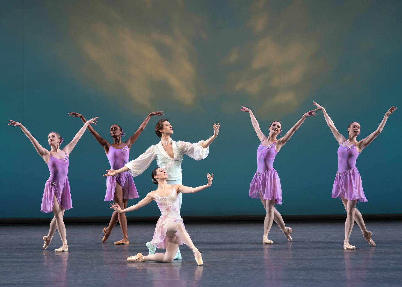 Tiler Peck, Joseph Gordon, and the Company in George Balanchine’s Ballo della Regina. Photoc: Erin Baiano