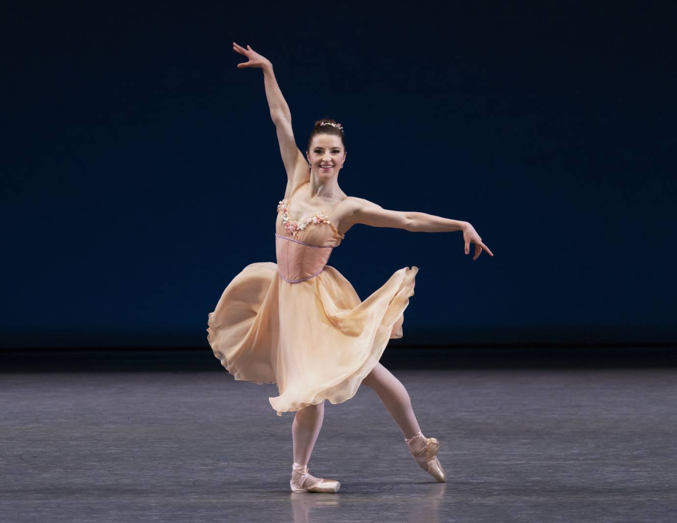 Indiana Woodward in George Balanchine’s Tschaikovsky Pas de Deux. Photo: Erin Baiano